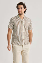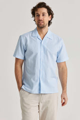 En stilren resortskjorta i luftig seersucker, perfekt för varmare dagar. Den unika strukturen i tyget ger en sval och behaglig känsla samtidigt som den håller sig snyggt skrynkelfri. Avslappnad passform med resortkrage, perfekt att bära både uppknäppt över en t-shirt eller som den är till chinos eller shorts.