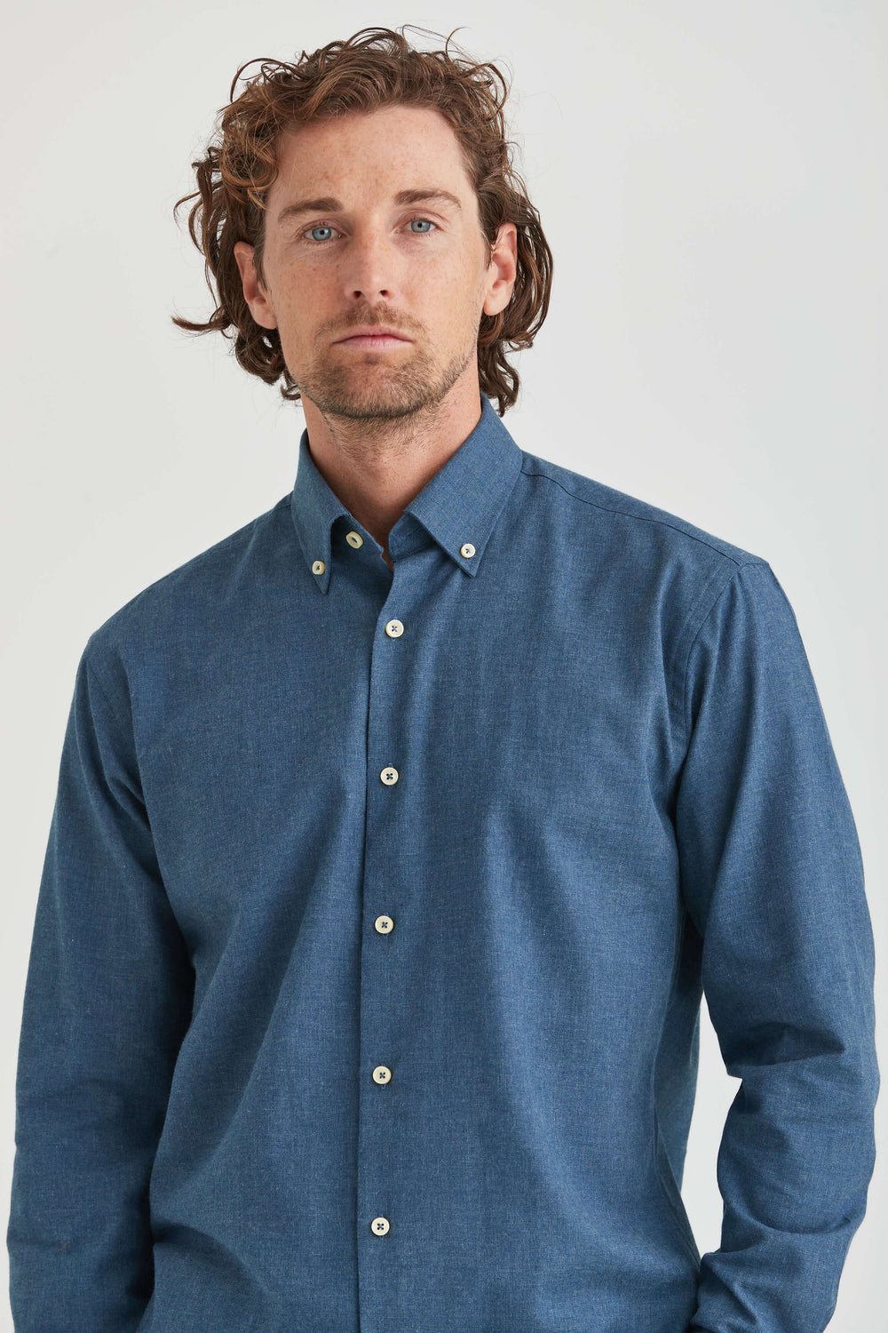 Blå flanellskjorta tillverkad i en mjuk och härligt borstad bomullsblandning. Skjortan har button down-krage och enkel manschett. Den varma och mjuka känslan gör att skjortan passar perfekt när temperaturen sjunker. En avslappnad skjorta som även kan bäras till en mer uppklädd stil.