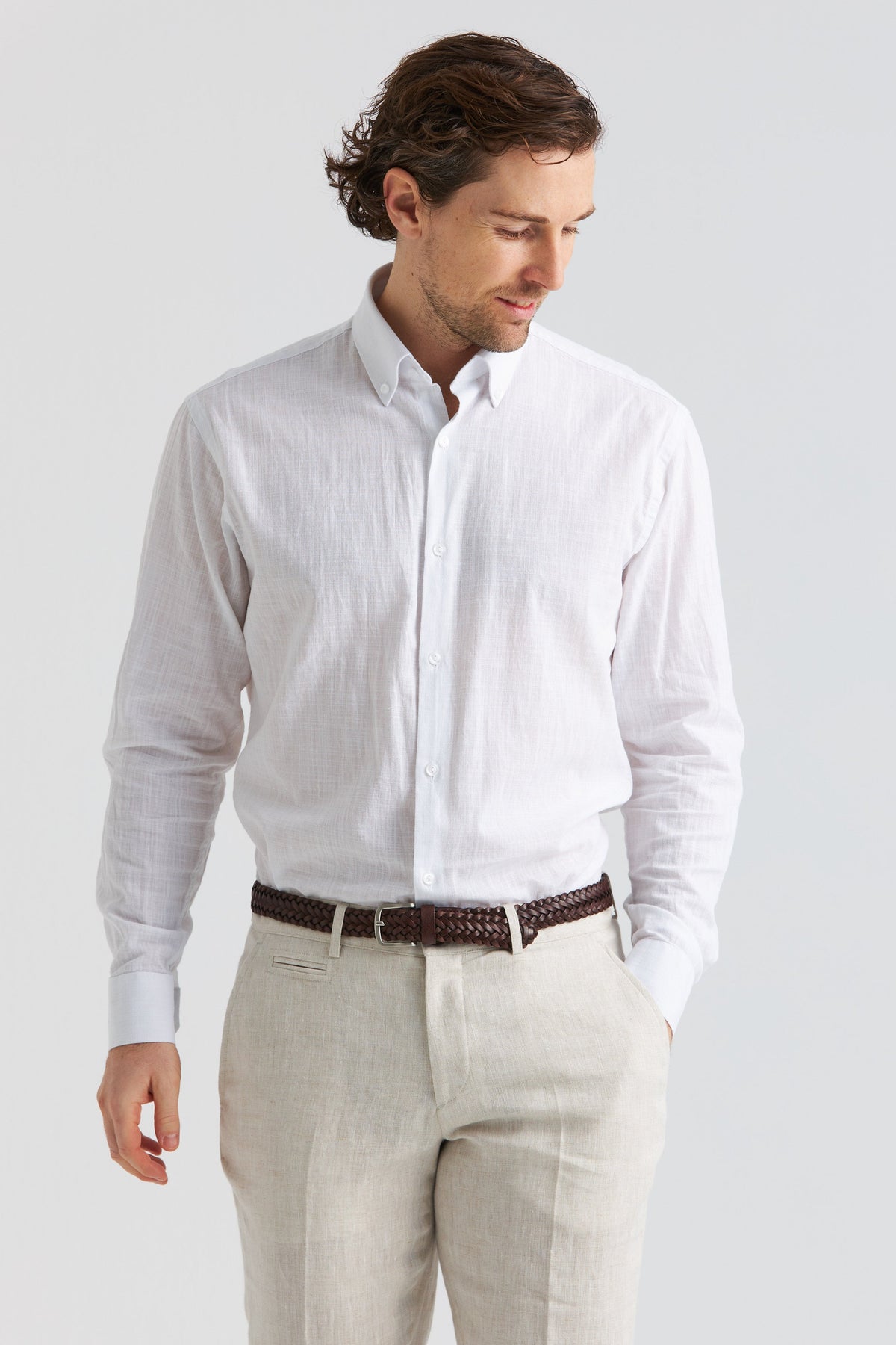 En somrig skjorta i 100% bomull med en lätt strukturerad väv som ger tyget en naturlig linnekänsla. Den klassiska button down-kragen och den stilrena designen gör skjortan lätt att bära både till arbete och mer avslappnade tillfällen.