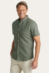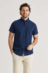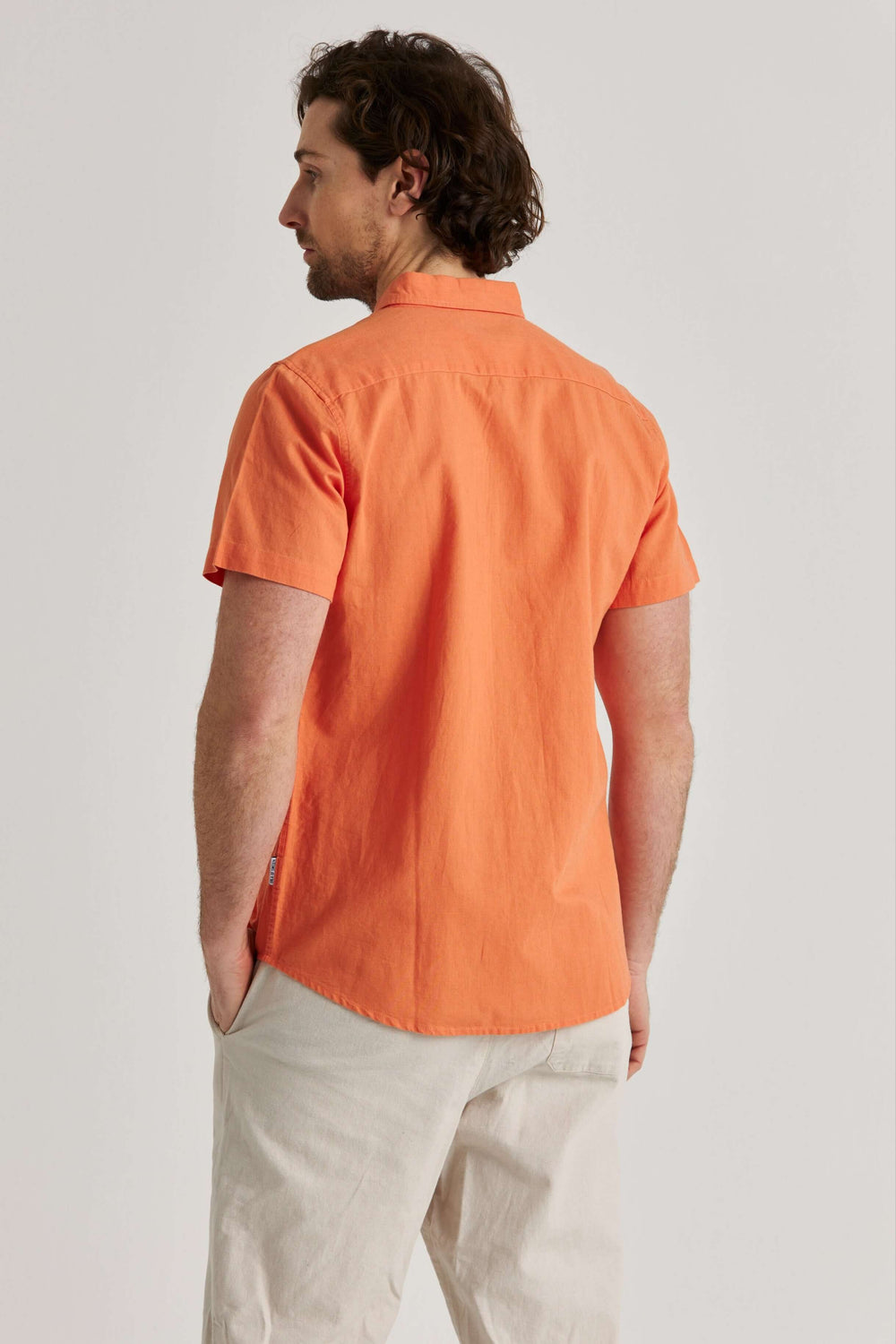 Orange kortärmad skjorta i en sval kvalitet blandad av linne och bomull. En skjorta i ledig stil som passar till vårens- och sommarens alla tillfällen!