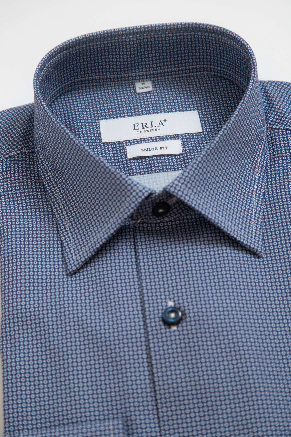 Marinblå skjorta med diskret mönster, tillverkad i 100% bomull för en skön och luftig känsla. Utrustad med en klassisk krage, perfekt för både kontoret och mer avslappnade tillfällen