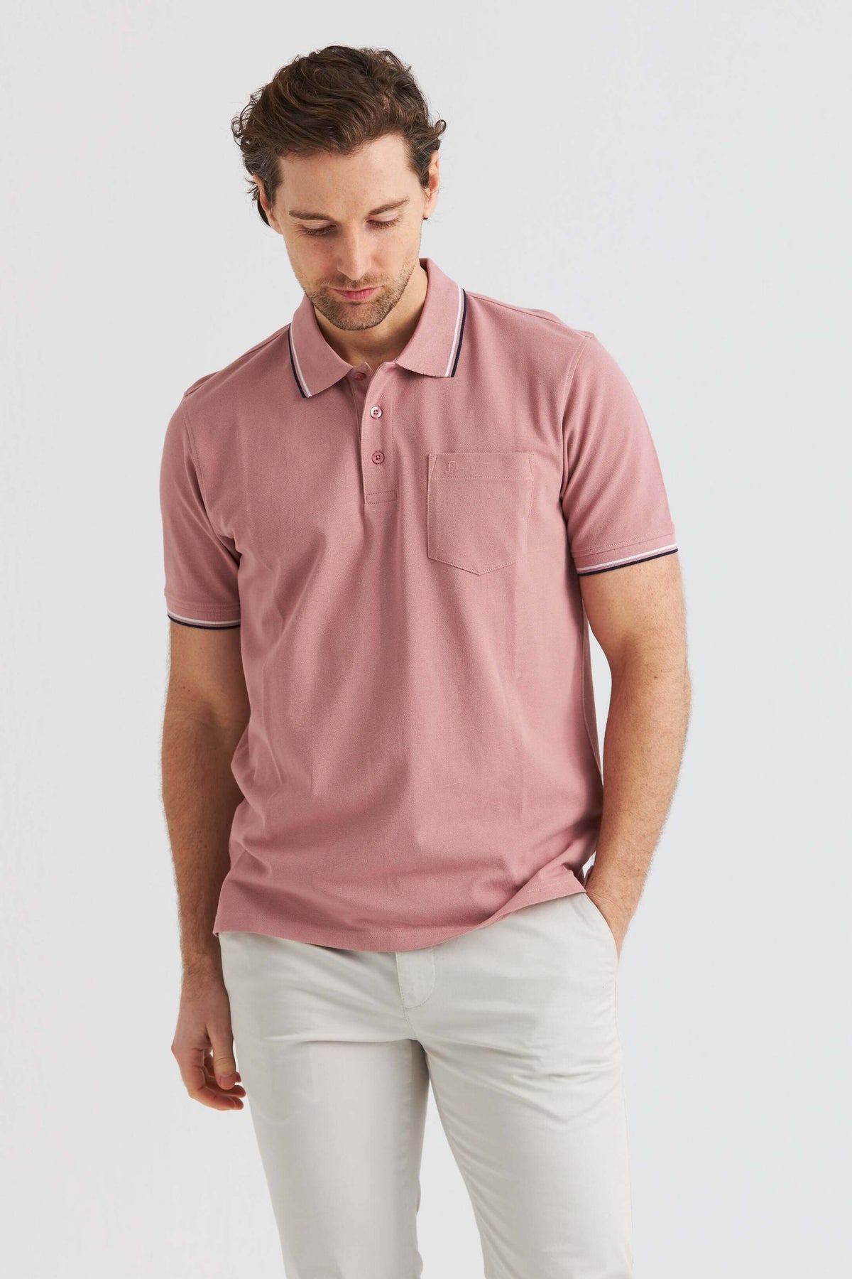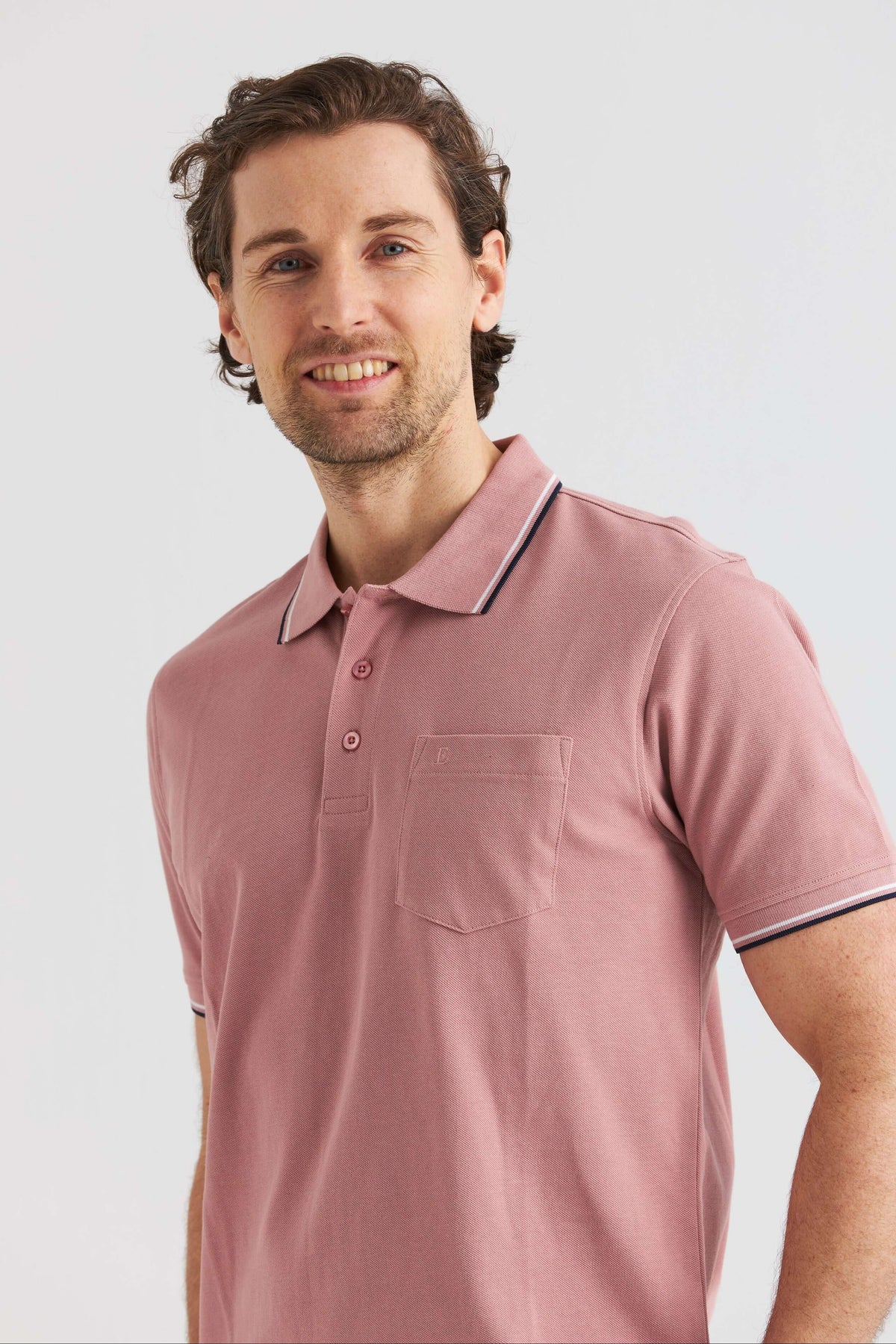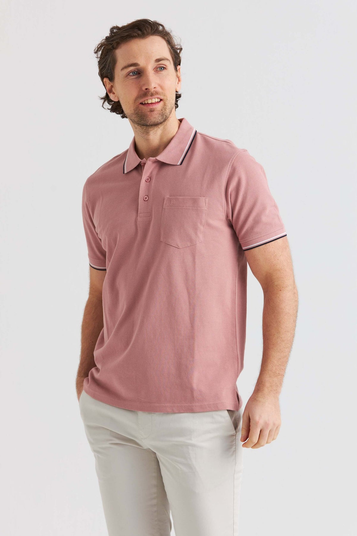 Rosa pikétröja i mjuk bomullskvalitet med klassisk design. En stilren piké som kombinerar komfort och en modern, avslappnad look – perfekt för både vardag och ledigare tillfällen.