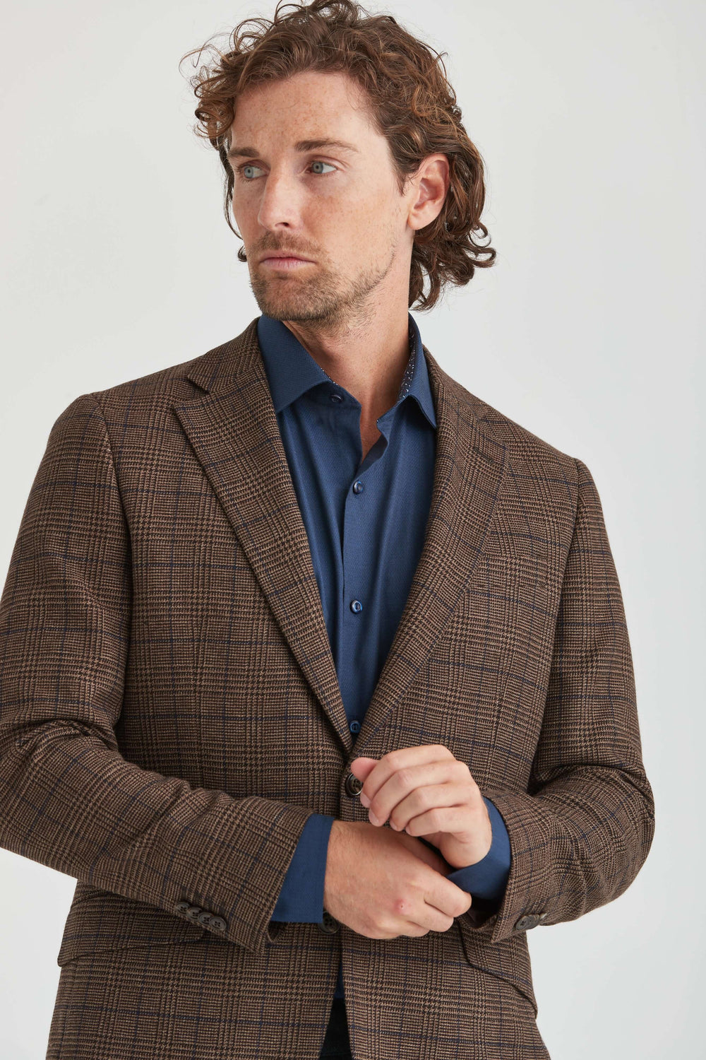 En mycket elegant brun höstkavaj i tillverkad i en rutmönstrad ullblandning med en lätt ruggad yta. Använd den över en skjorta eller stickad tröja för en stilfull look.