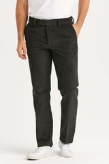 Manchesterbyxor med rak passform tillverkade i en bomullsblandning med stretch vävt av tvinnade parallella fibrer som skapar de karaktäristiska ränderna. Finns i fyra färger; grå, mörkgrön, brun och marinblå. En klassisk byxa som aldrig går ur tiden.