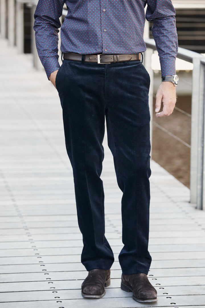 manchesterbyxa marinblå för herr i Regular Fit, klassisk passform och mjuk bomull med stretch