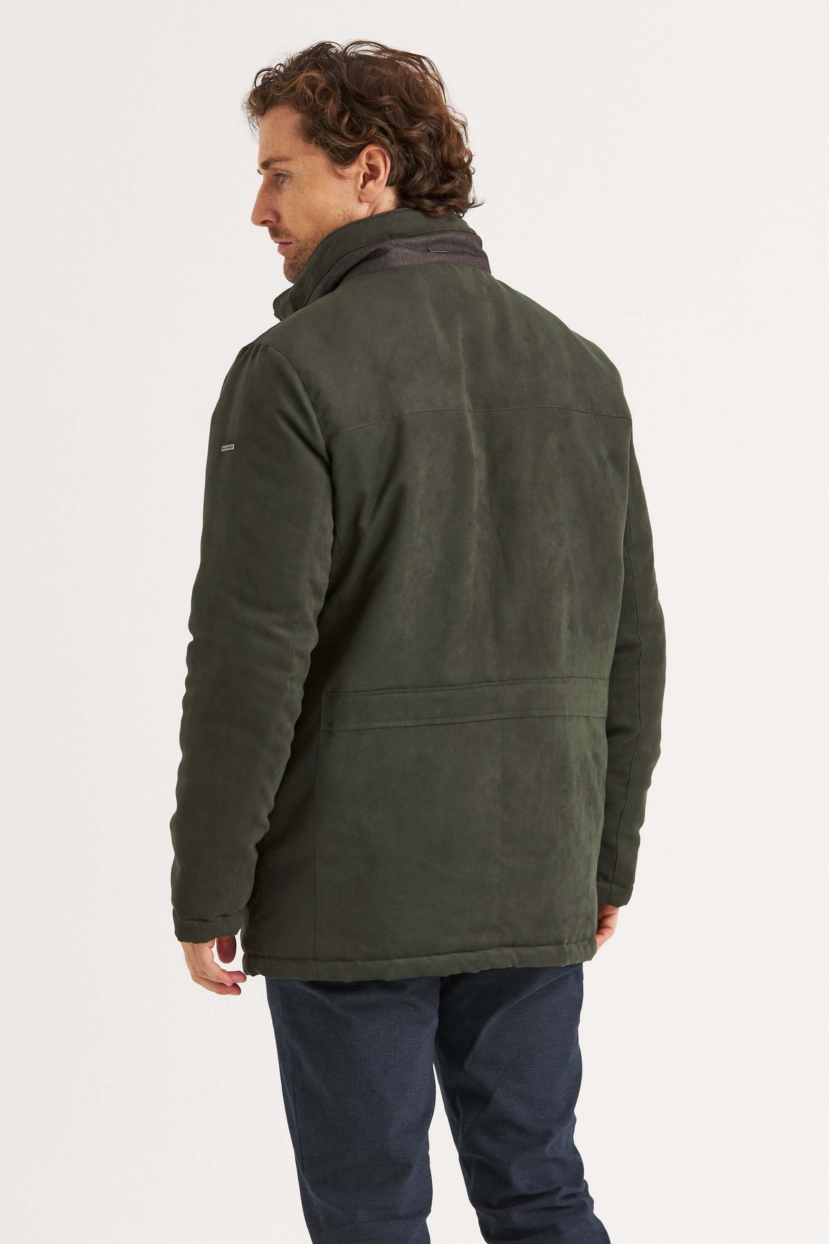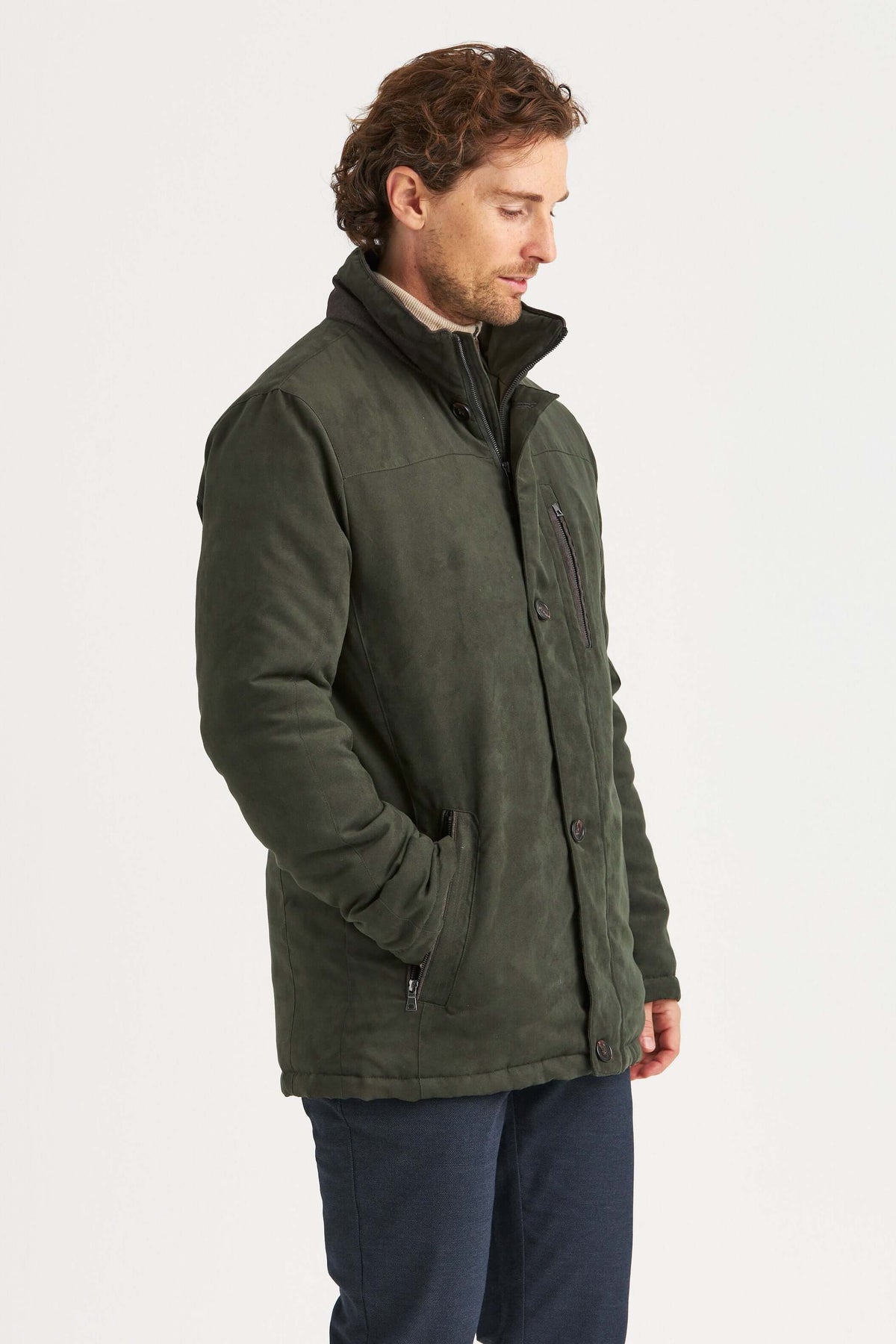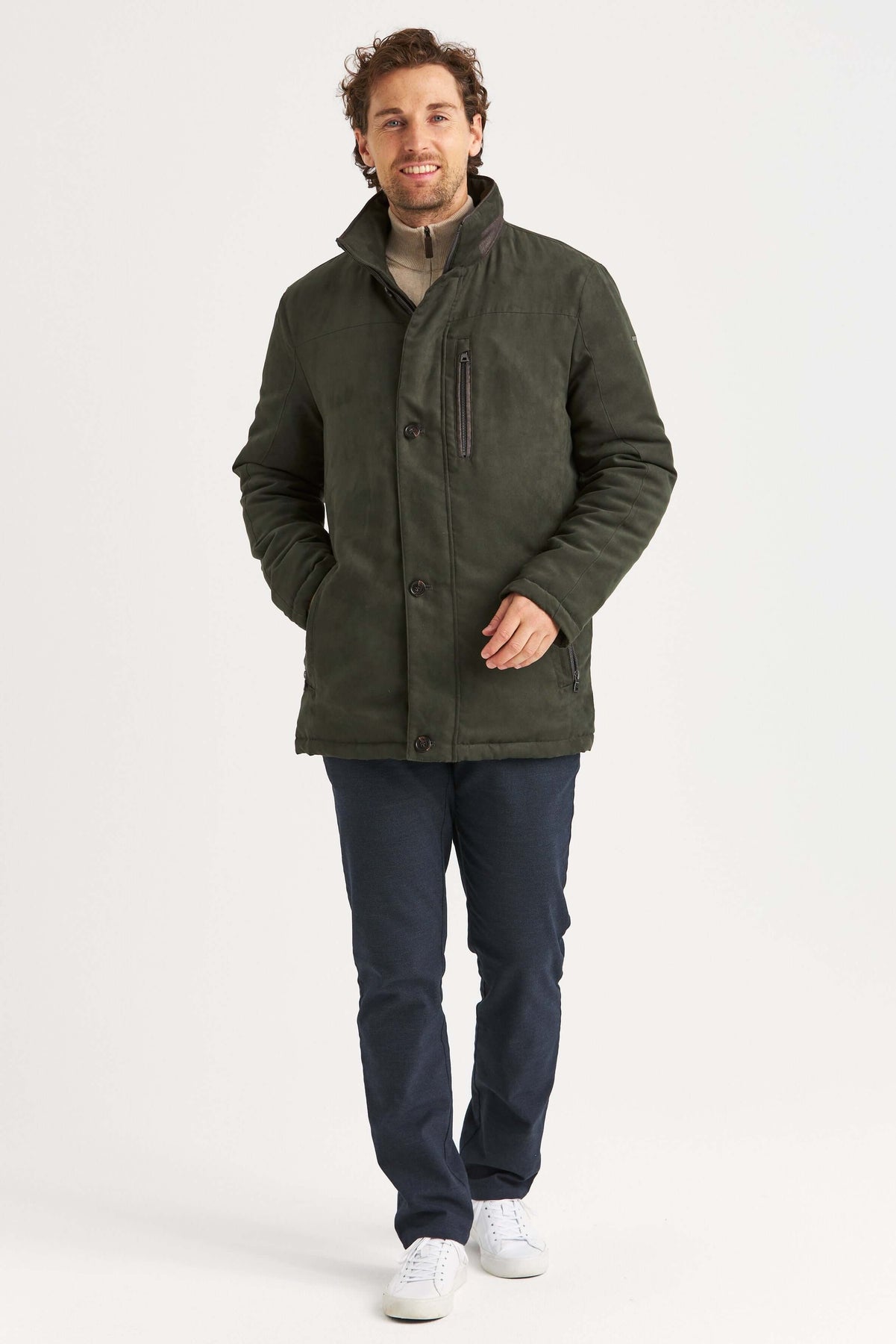 Vinterhalvårets stilfullaste och elegantaste jacka! Alcantaratyget ger en mjuk och smidig mockaliknade känsla och har ett svagt strukturerat mönster. Jackan har flera välarbetade detaljer i brunt.