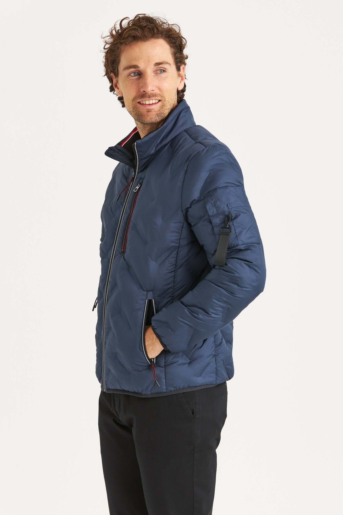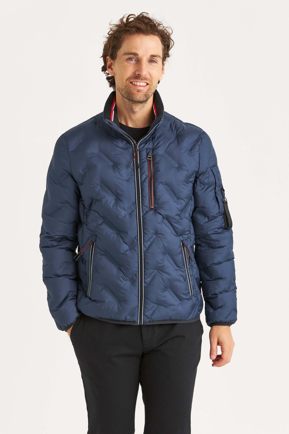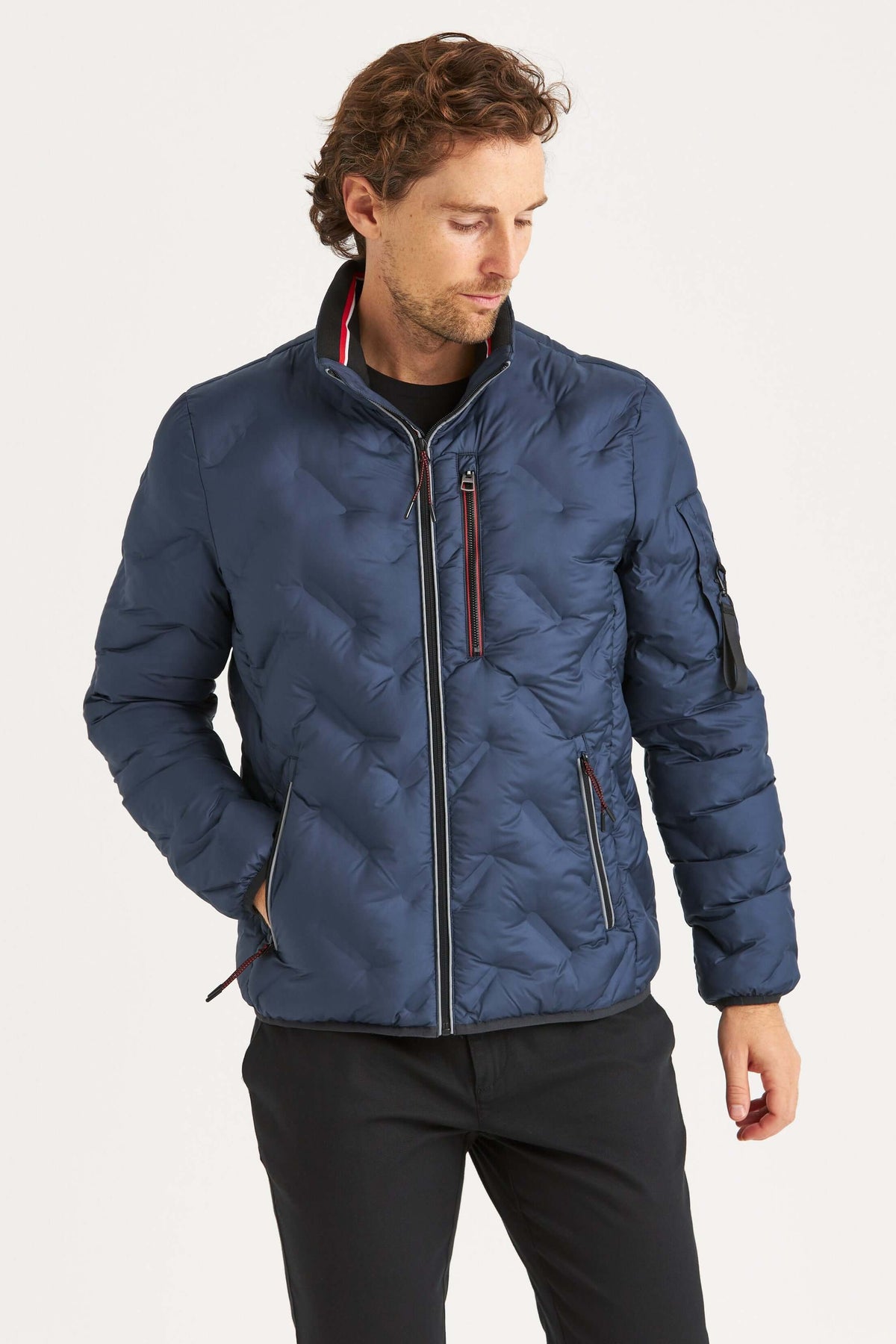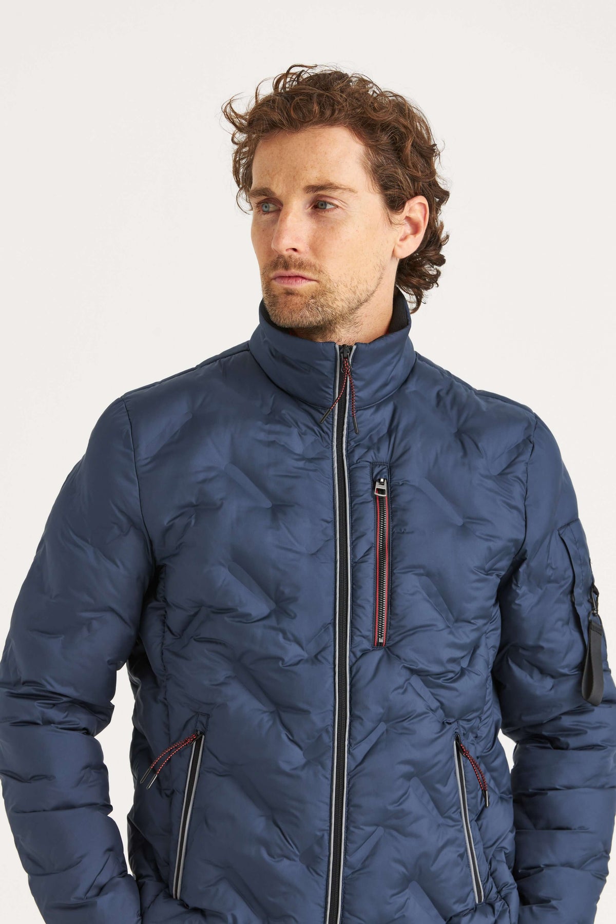 En sportigt elegant lättviktsjacka i marinblått, tillverkad i ett vattenavvisande material som skyddar mot lätt regn och blåst. Jackan har lätt vaddering som ger värme utan att kännas tung, samt en modern passform med ståkrage och kontrastdetalj. Utrustad med flera praktiska fickor med dragkedja och diskreta detaljer som ger ett stilrent intryck. Perfekt för övergångssäsongen – både till vardags och lediga dagar.