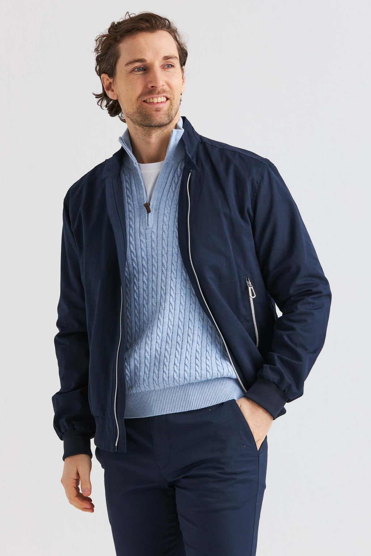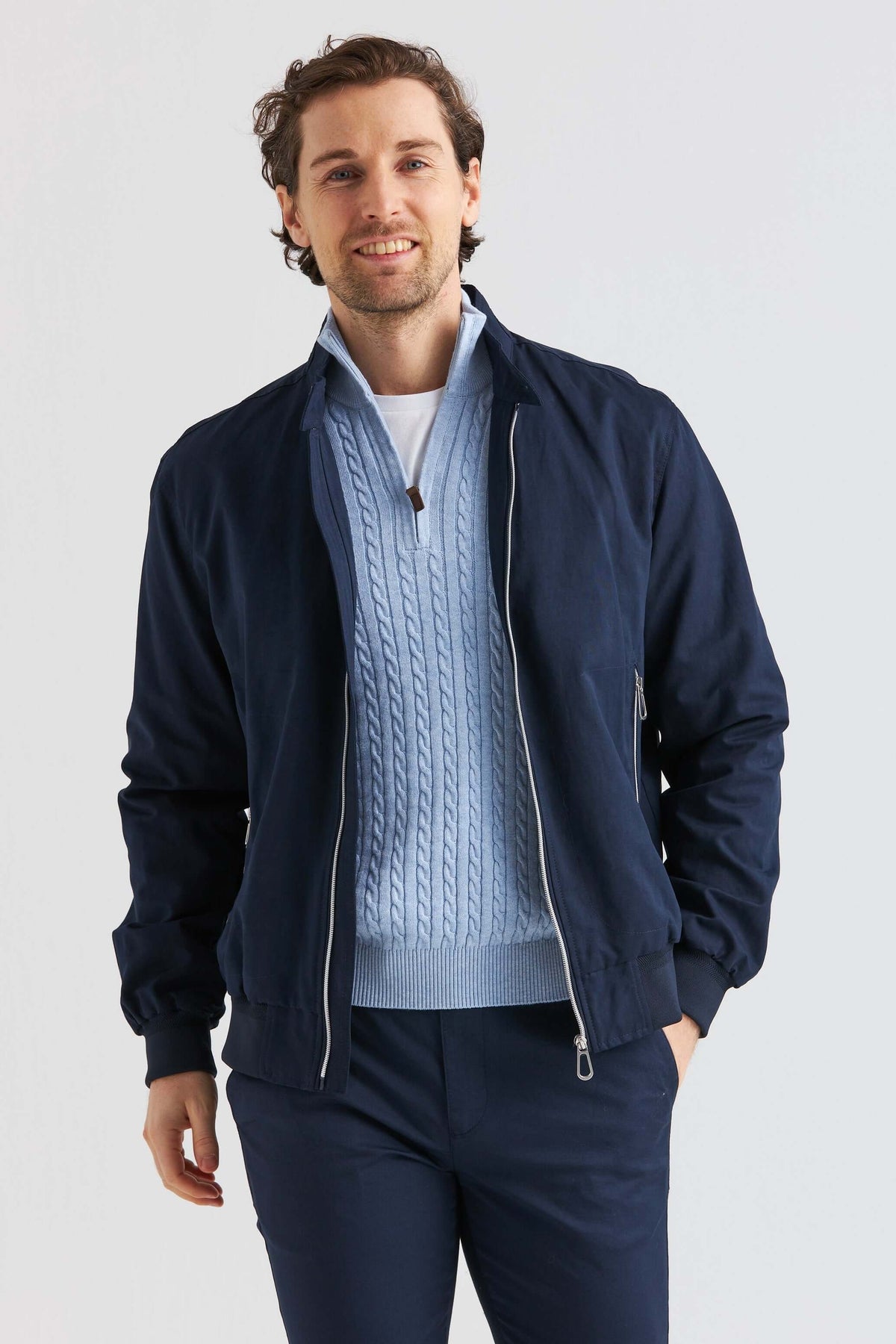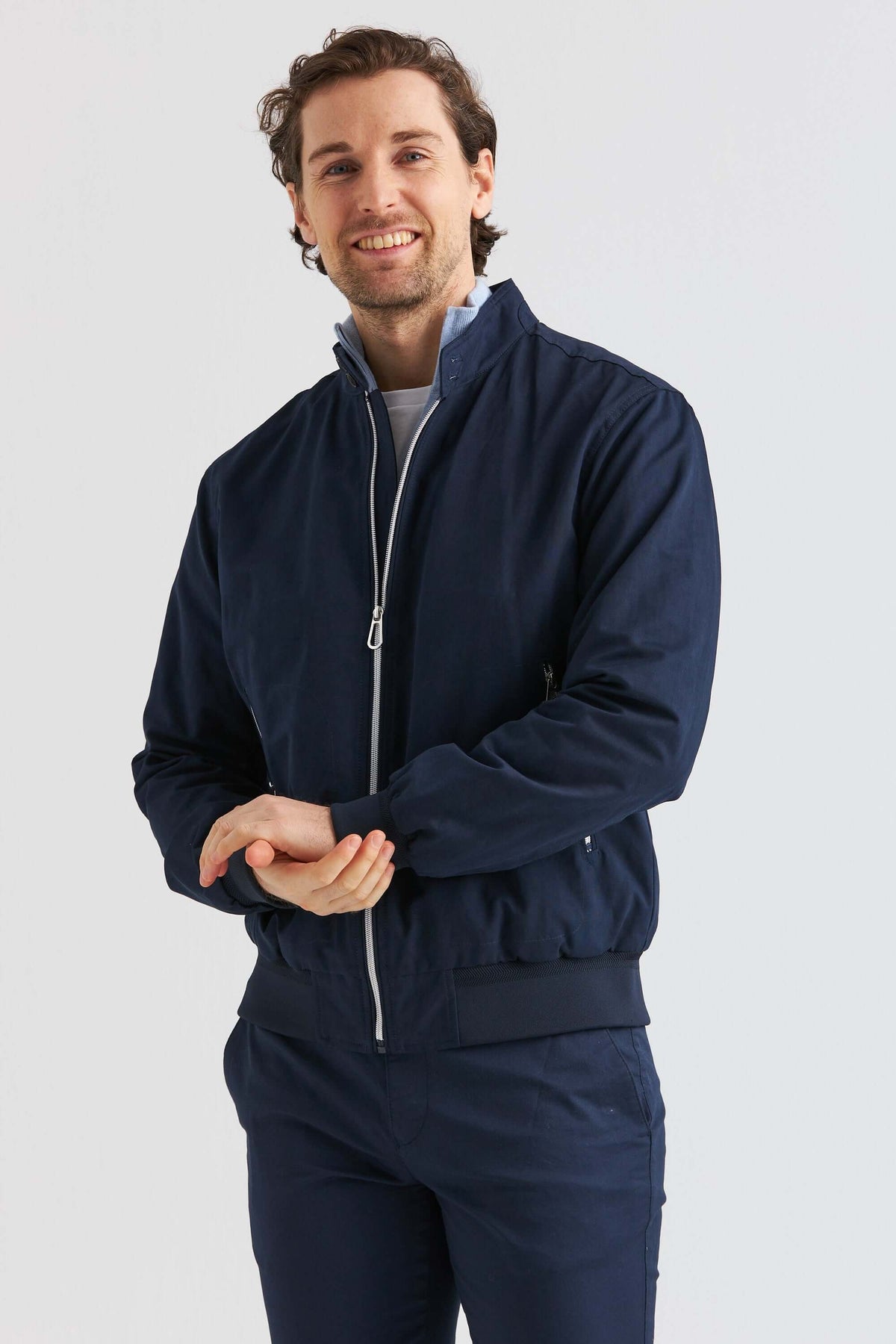 Lätt och smidig vårjacka i mjuk bomullsblandning med en ren och tidlös design. Den följsamma kvaliteten ger hög komfort samtidigt som materialet är slitstarkt och praktiskt för säsongen. En mångsidig jacka som passar lika bra till vardags som till mer dressade tillfällen.