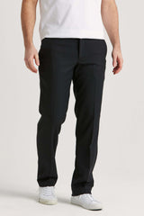 Elegant svarta kostymbyxor i mjuk ullstretch med rak och klassisk passform. Byxorna är sköna att bära hela dagen och enkla att styla både uppklätt och mer avslappnat. Matcha med kavaj för en tidlös kostym, eller kombinera med skjorta, stickad tröja eller t-shirt för en modern vardagsstil. En mångsidig finbyxa som fungerar i många olika sammanhang.