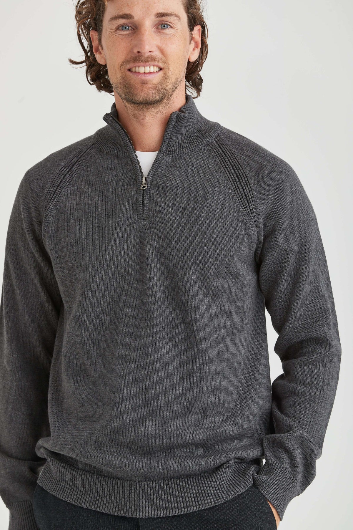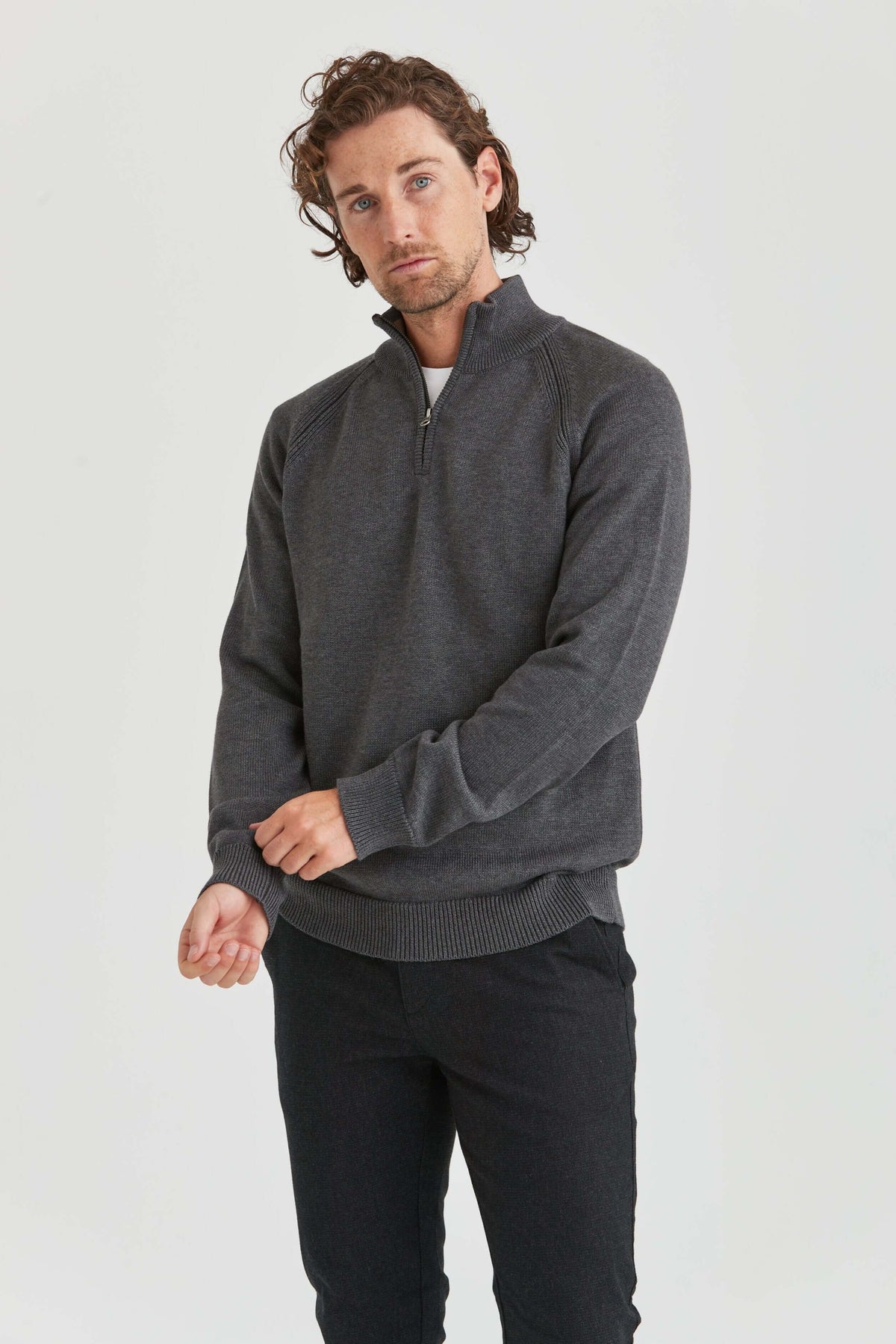 En stilren och bekväm stickad tröja med dragkedja i kragen. Fungerar utmärkt att bära över skjortan eller t-shirten och passar till alla sorters byxor. En favorit för säsongens alla dagar – lika självklar till vardags som till mer uppklädda tillfällen.