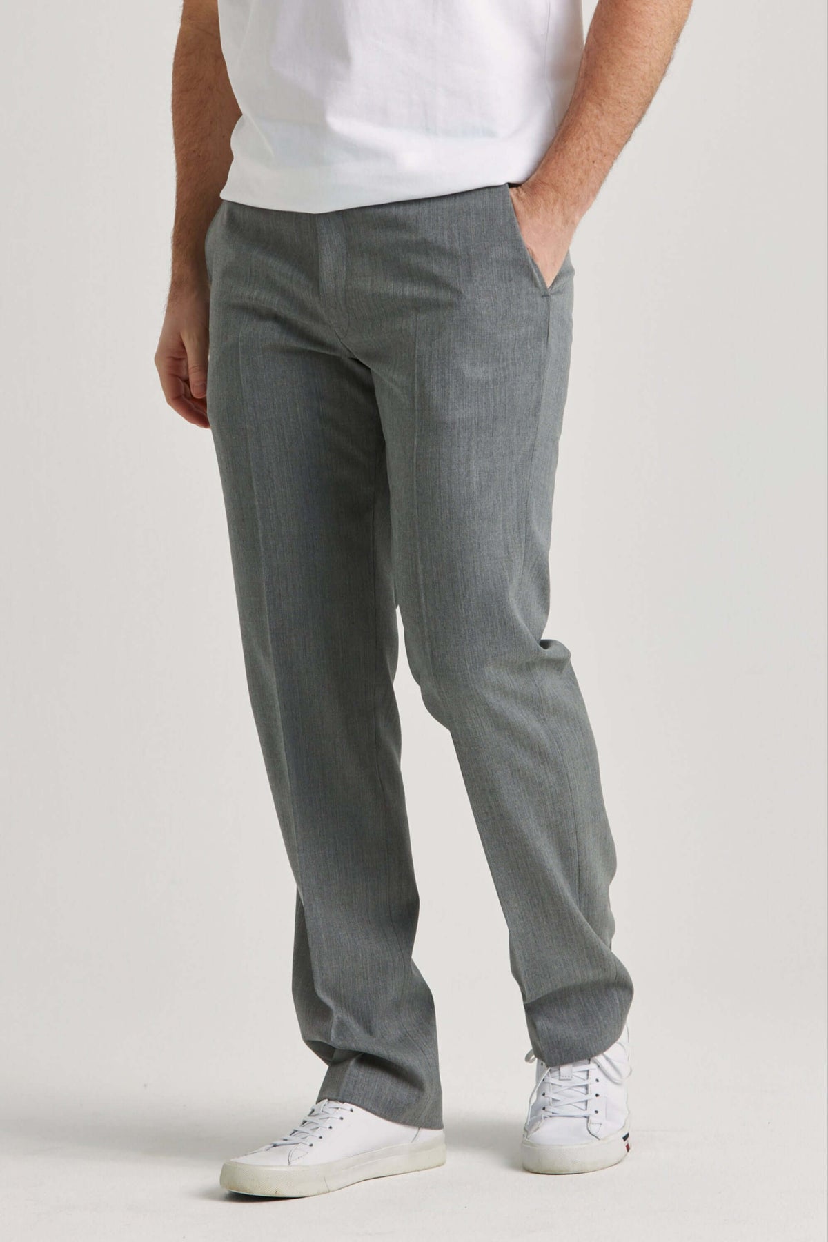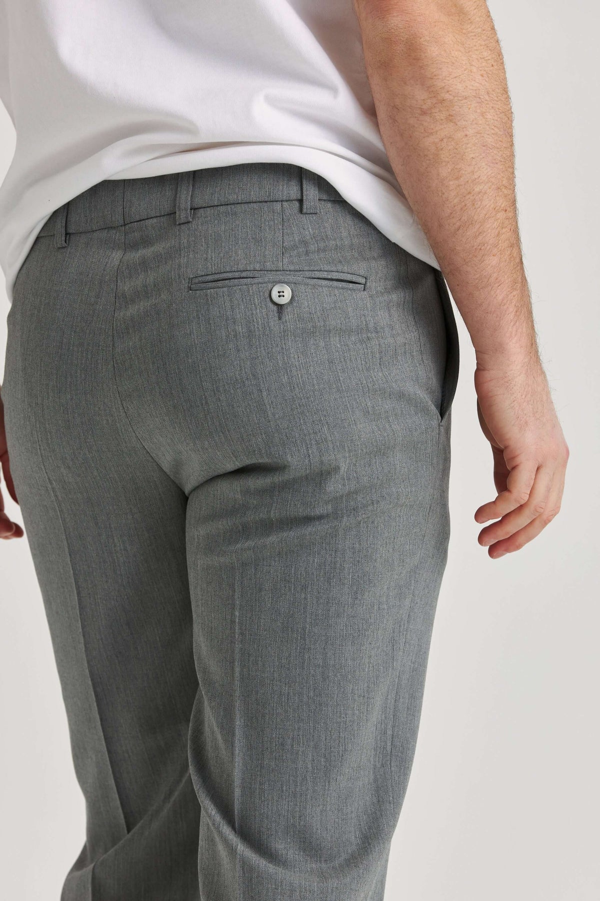 Elegant ljusgrå kostymbyxor i mjuk ullstretch med rak och klassisk passform. Byxorna är sköna att bära hela dagen och enkla att styla både uppklätt och mer avslappnat. Matcha med kavaj för en tidlös kostym, eller kombinera med skjorta, stickad tröja eller t-shirt för en modern vardagsstil. En mångsidig finbyxa som fungerar i många olika sammanhang.