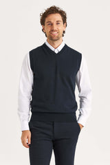 Finstickad slipover i 100% bomull. Använd den som den är över skjortan eller under en kavaj för en ännu mer välklädd look.