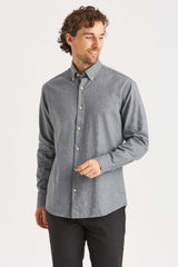 Blå flanellskjorta tillverkad i en mjuk och härligt borstad bomullsblandning. Skjortan har button down-krage och enkel manschett. Den varma och mjuka känslan gör att skjortan passar perfekt när temperaturen sjunker. En avslappnad skjorta som även kan bäras till en mer uppklädd stil.