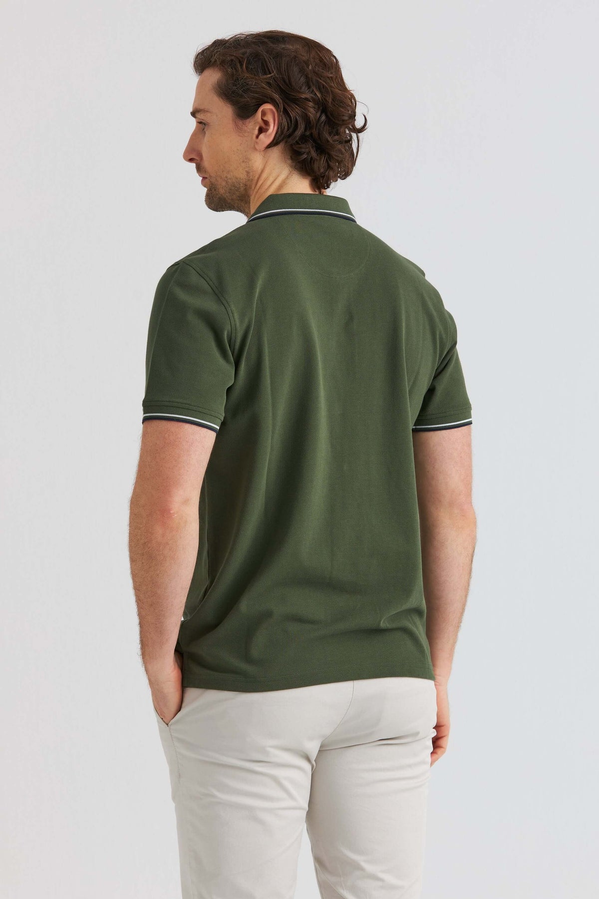 Grön Pikétröja med Kontrastdetaljer