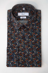 En stilren skjorta i mörkgrönt med ett subtilt blommönster som ger en modern och elegant känsla. Tillverkad i 100% bomull för en mjuk och behaglig komfort. Skjortan har en regular fit-passform och fungerar lika bra till vardags som till mer uppklädda tillfällen. Ett perfekt val för dig som vill addera lite mönster och personlighet till garderoben.
