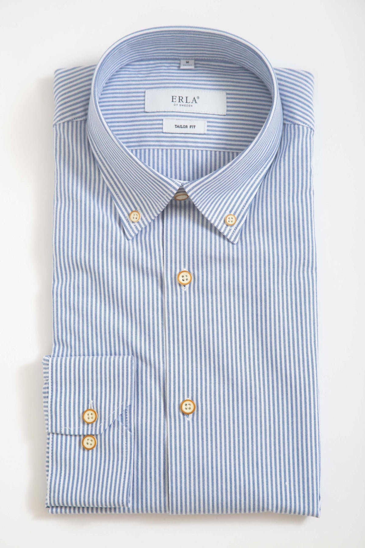 Klassisk randig skjorta i 100% bomull med button down-krage. Den smalrandiga designen ger ett stilrent och tidlöst uttryck som passar lika bra till arbete som till en mer avslappnad stil.